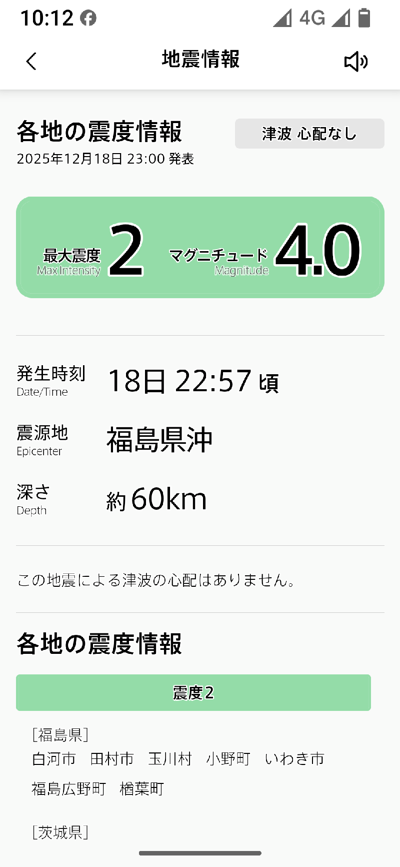 見出しの横に>のある項目をタップすると、その詳細情報が表示されます。