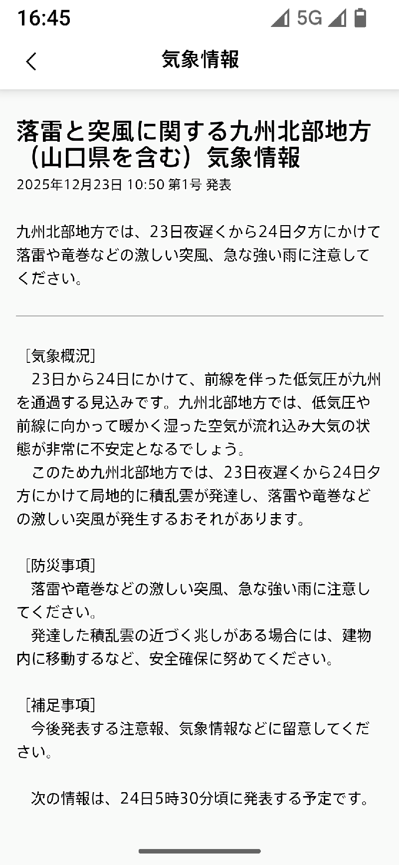 雷画面の表示は1分単位で切り替わります。