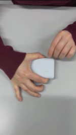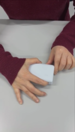 このモバイルバッテリーですけれども、電源ボタンを1回ポンと押していただくと、現在の電池残量を振動で伝えてくれます。
