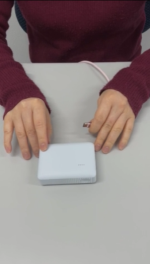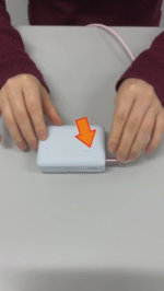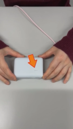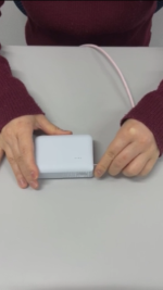 では、ケーブルを挿していくのですけれども、通常のモバイルバッテリーは、ケーブルを挿すとLEDランプが点灯するだけなのですが、このモバイルバッテリーは、ちゃんと電気が充電されているよと言うことを伝えるために、ケーブルを指すと、ブッと振動します。