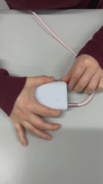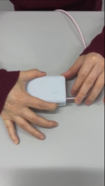 私は今、左手にCケーブルを持っておりまして、右手にモバイルバッテリーを持っております。